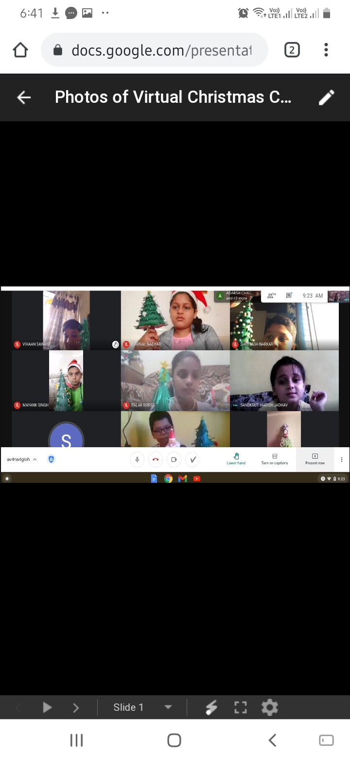 A virtual Christmas Celebration was held on 22nd December at 8.30am for classes II-XII . The theme for the same was ‘ the true spirit for Christmas lies within one’s heart’. The programme showcased dances, meaningful skit & Christmas message to students leaving an imprint that Christmas is not just a mere Celebration but rather celebration of love, sharing & compassion. Followed by each class had different Christmas activities such as: Christmas tree making, Christmas bell making, wreath making,star making, door decoration, poster making & Christmas toran making. Students participated in the respective activities with great vigour & enthusiasm to enhancing the festive mood. The spirit of Christmas was also kept alive with a beautiful crib prepared in the school by the helpers too.