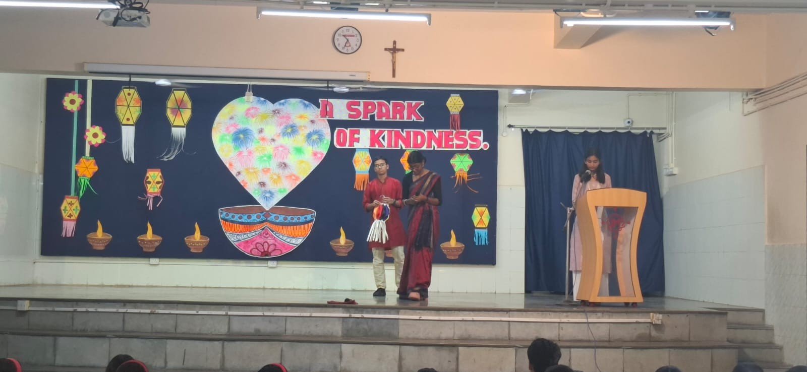 A special assembly on the theme ‘ The Spark of Kindness ‘ was conducted on Tuesday, 17th October 2025, by the students of class IXB to mark the upcoming festival of Diwali. The program began with a meaningful prayer service.