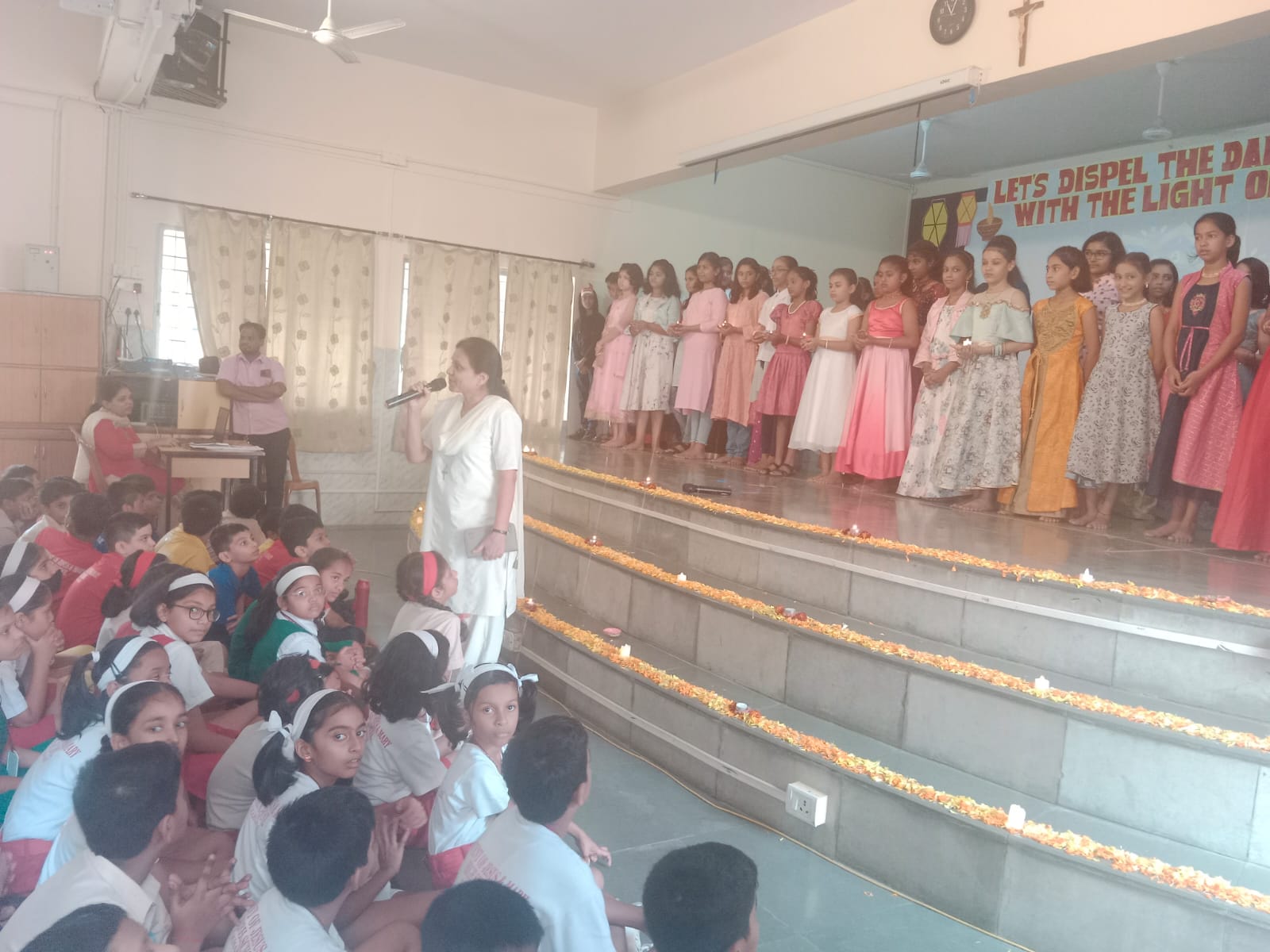 Diwali the festival of light was celebrated with a cheerful heart on 19th October 2022. The theme for the assembly was ‘Spread the light of joy’. Prayer dance, a skit that highlighted the victory of good over evil and a beautiful dance were presented by students. The programme concluded with a thought provoking message by our dear Principal Sr. Victoria.