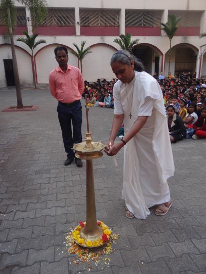 On the account of feast of St. Claudine Thevenet, the Mother foundress of Religious of Jesus &  Mary, Congregation the Feast Day Celebration was done for the entire school SSC & ICSE . The theme for the same was Until a grain of wheat falls and dies…A Special programme was showcased depicting the life of St. Claudine and the values to be ingrained in our lives. The celebration seemed to be joyful as the entire school was decorated with festal decors. Sr. Louisa addressed all giving the wishes of the day. followed by the distribution of snacks and gifts  to the staff and the students.