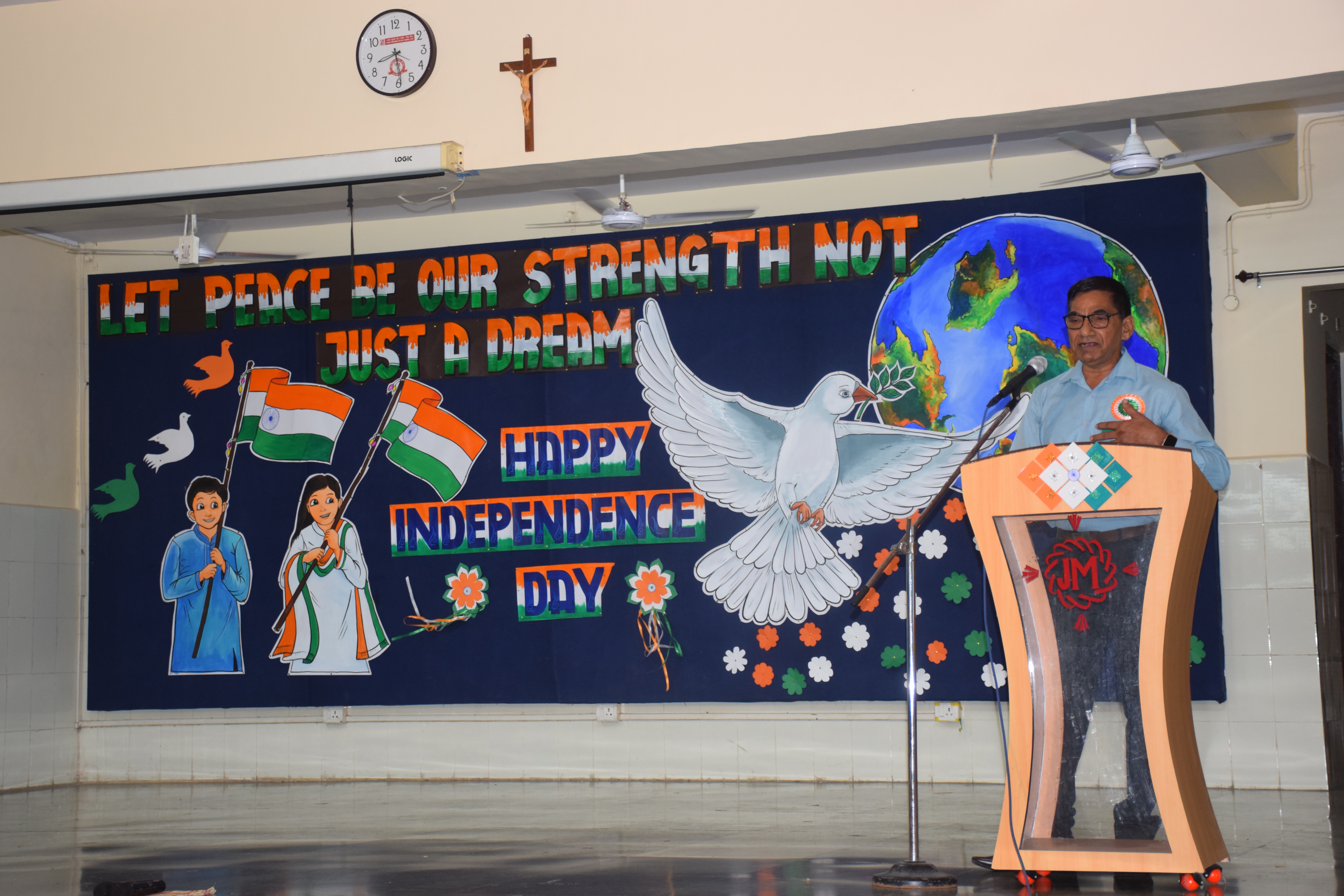 The 79th Independence Day was celebrated with great pride and patriotic spirit at Convent of Jesus and Mary School on 15th August. The celebration began with the flag hoisting ceremony by the Director of SSC section Sr. Sheron Pereira, Manager Sr. Agatha Pereira, and Chief Guest Lt. Raj Kumar Rana, accompanied by the national anthem. This was followed by a prayer service, invoking blessings for the nation and its people. The school was also proud to welcome the Guests of Honour – ICSE topper Anvika Meher and SSC topper Riya Ritesh, who were celebrated for their academic excellence.
