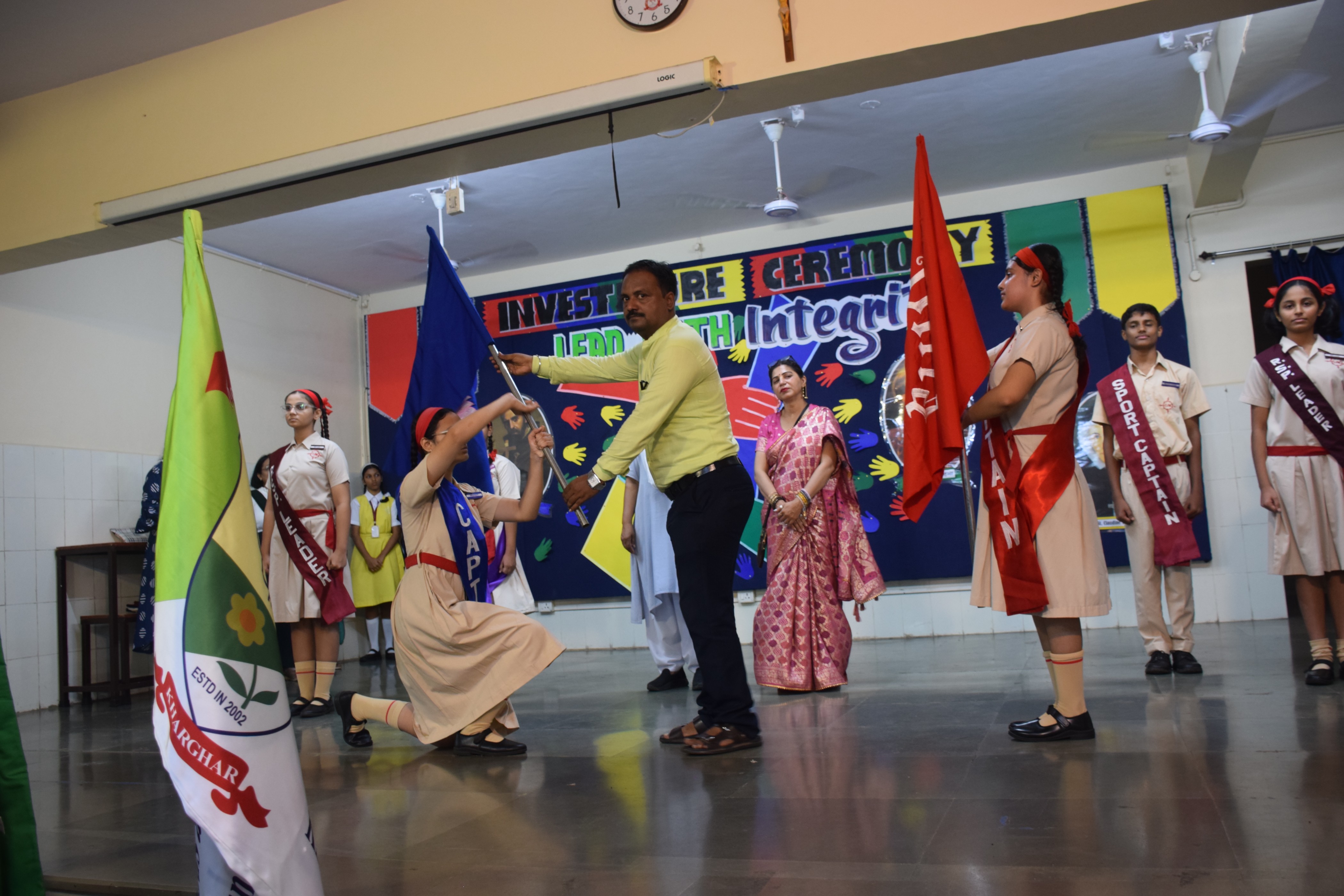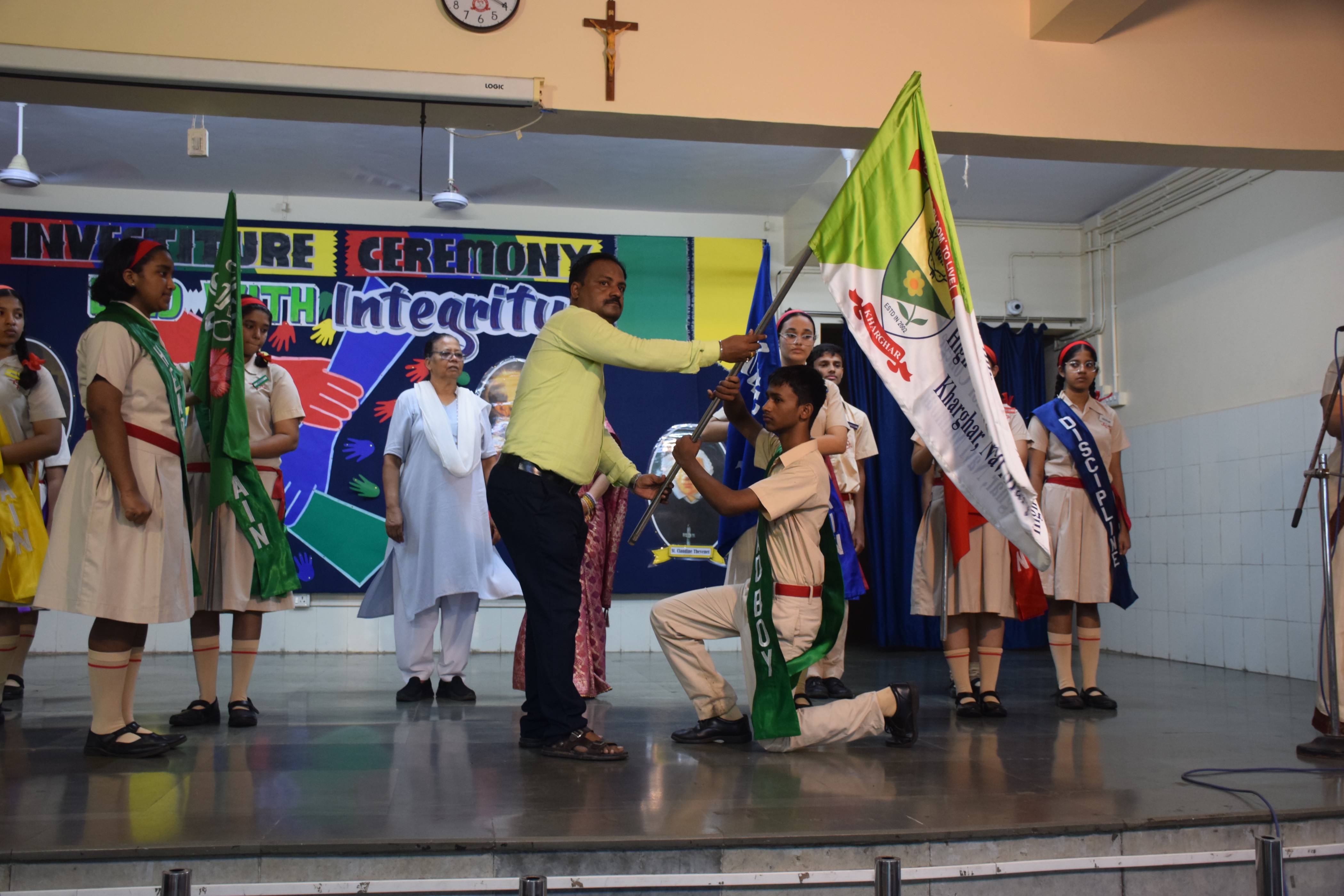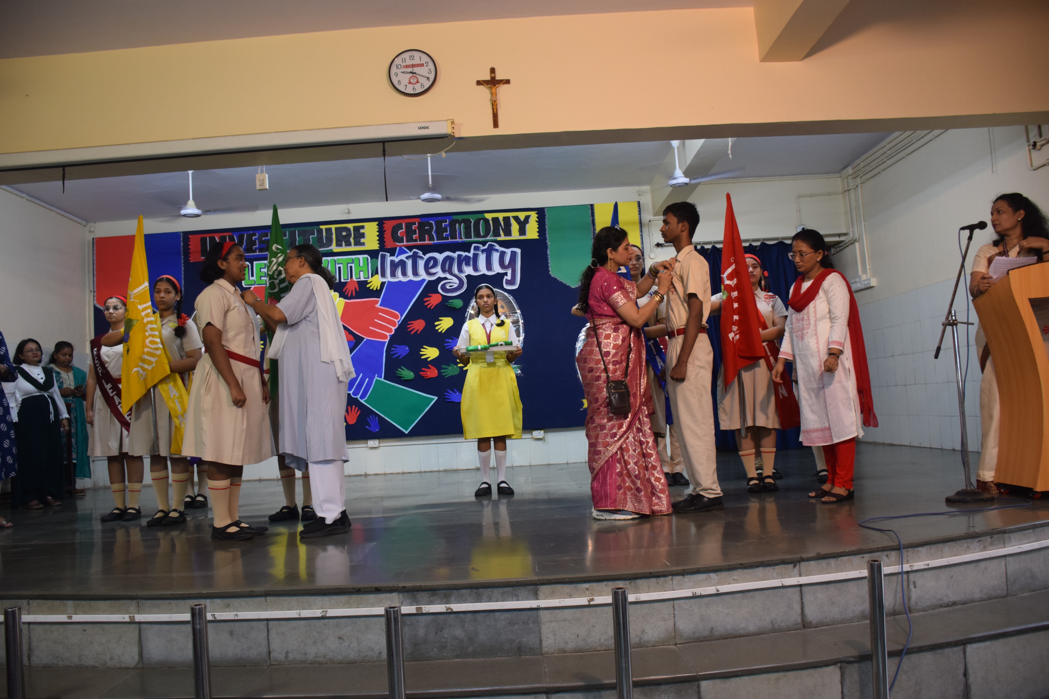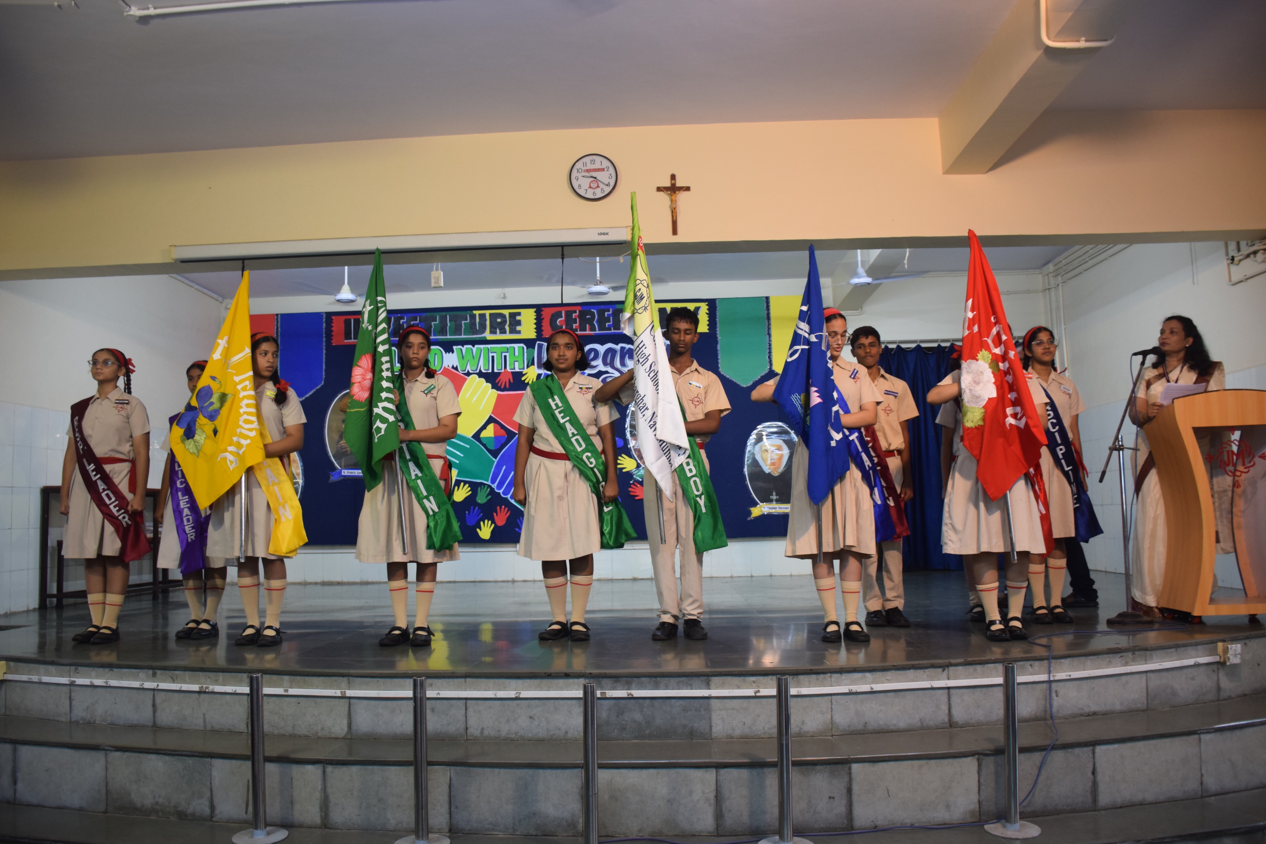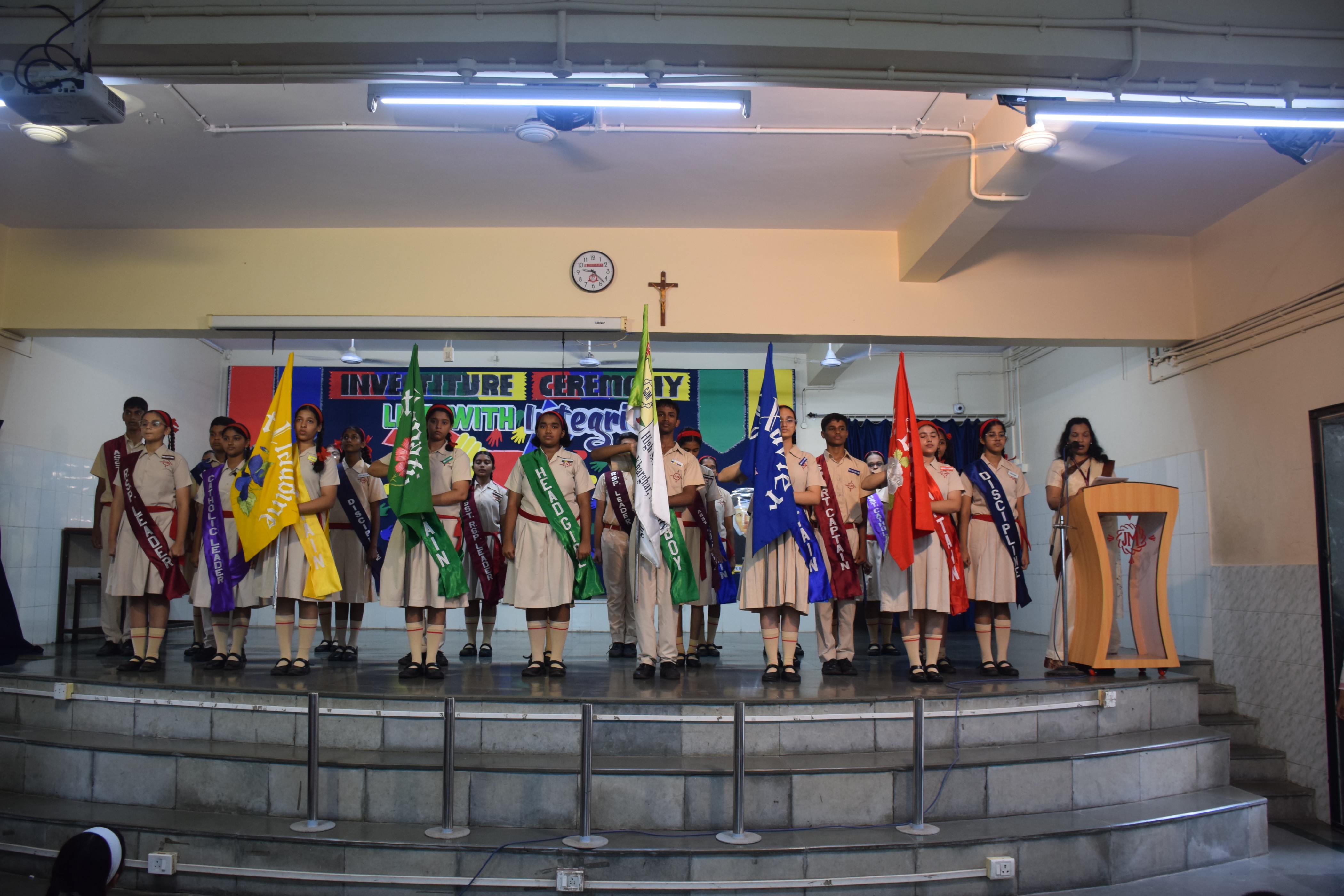 It started off with a short prayer service followed by the school council members marching towards the stage with great pride. The newly appointed leaders were bestowed with badges and sashes by the Manager Sr.Agatha Pereira, the Director of The SSC section Sr. Sheron Pereira and the Coordinator Ms. Minaxi Kochar. Sr.Sheron Pereira congratulated and encouraged the newly appointed office bearers to work in harmony and be true role models for others.