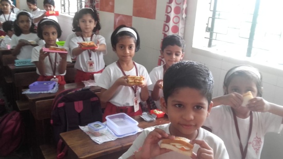 To promote the importance of healthy food habits in children, Sandwich Making Activity was conducted on Tuesday, 20th August 2019, for the primary section, in their respective classes. Students had bought the respective ingredients for the same  and prepared sandwiches themselves which was  relished among the classmates.