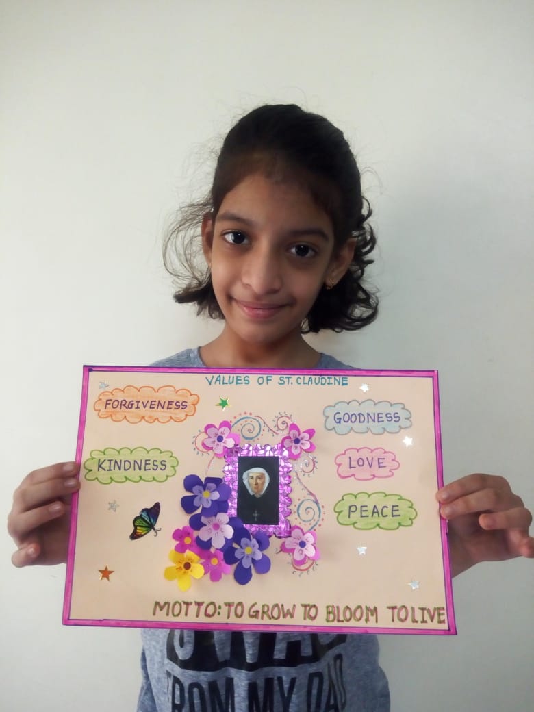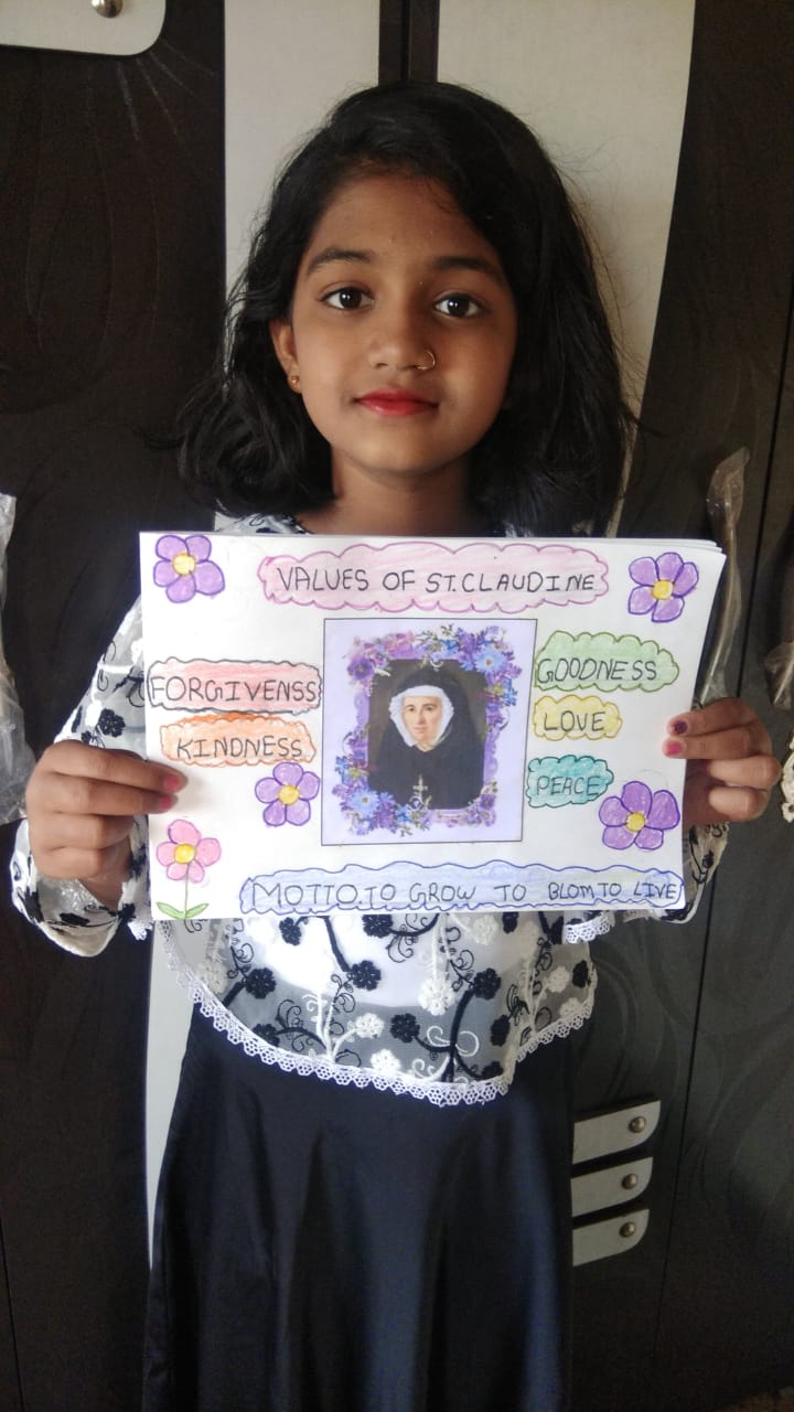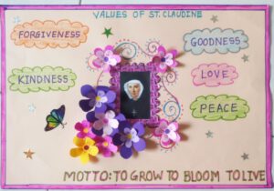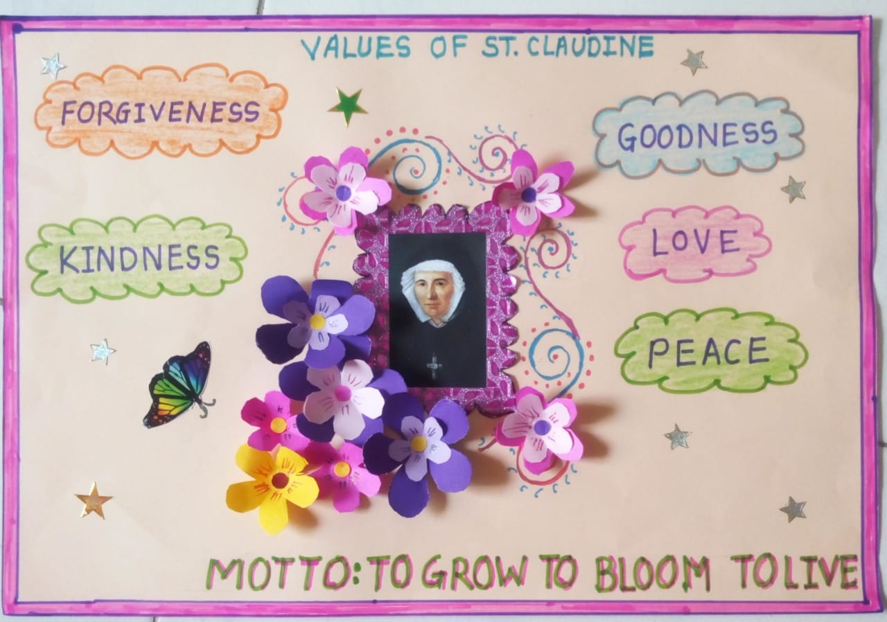 The programme was a meticulous and a colourful visual treat with a prayer theme ‘St.Claudine lead us to renew our strength & courage to journey ahead in faith.’ The programme showcased special prayers, scripture reading, reflection, a meaningful skit revealing the zealous life led by st.claudine.  The programme also included feastal song sung by students , dances glorifying mother foundress & handmade greeting cards prepared by students from various classes. A special tribute to the Sisters of the Congregation added colour to the programme expressing gratitude for their selfless service.