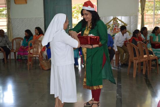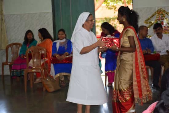 Sr. Madeleine gave a Christmas message to the staff. The staff was provided with snacks and gifts by the management.