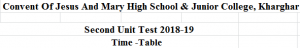 11 Dec Uncategorized TIME TABLE FOR THE II UNIT TEST-STD V TO STD VIII-2018-19 Posted by cjmkharghar Leave a comment December 11, 2018 Dear Parents, This is to inform you that given below is the TIME TABLE FOR II UNIT TEST of the Secondary Section (Std V to Std VIII) for the year 2018-19. Facebook Twitter Google Email Pinterest