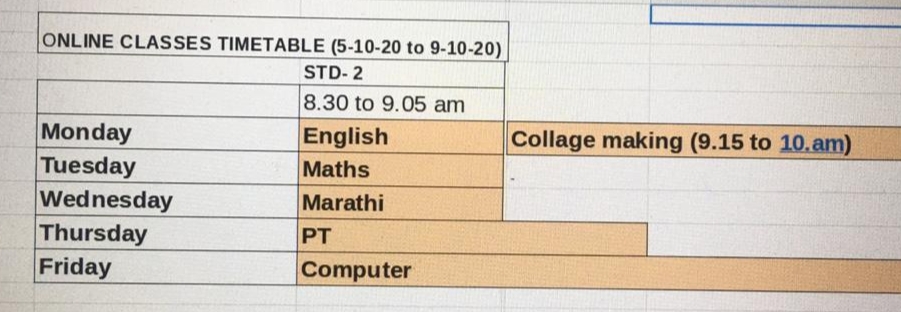 04 Oct TIME TABLE FOR ONLINE CLASSES TIME TABLES FOR ONLINE CLASSES -FOR STD II ,III & IV FROM 5TH OCTOBER 2020 TO 9TH OCTOBER 2020. Posted by cjmkharghar Leave a comment October 4, 2020 Dear Parents, Given below is the TIME TABLES FOR ONLINE CLASSES -FOR STD II, III & IV FROM 5TH OCTOBER 2020 TO 9TH OCTOBER 2020. Facebook Twitter Google Email Pinterest