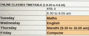 30 Aug TIME TABLE FOR ONLINE CLASSES TIMETABLE FOR ONLINE CLASSES – STD II – 1ST SEPTEMBER 2020 TO 4TH SEPTEMBER 2020. Posted by cjmkharghar Leave a comment August 30, 2020 Dear Parents, Given below are the TIME TABLES FOR THE ONLINE CLASSES FOR STD II FROM 1ST SEPTEMBER 2020 TO 4TH SEPTEMBER 2020. CONVENT OF JESUS AND MARY HIGH SCHOOL, KHARGHAR TIMETABLE FOR ONLINE CLASSES Facebook Twitter Google Email Pinterest