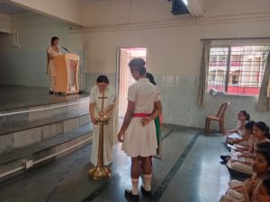 The assembly began with the welcoming of our new Principal- Sr. Victoria Sansare  Sister was warmly welcomed to CJM Family, Kharghar.
